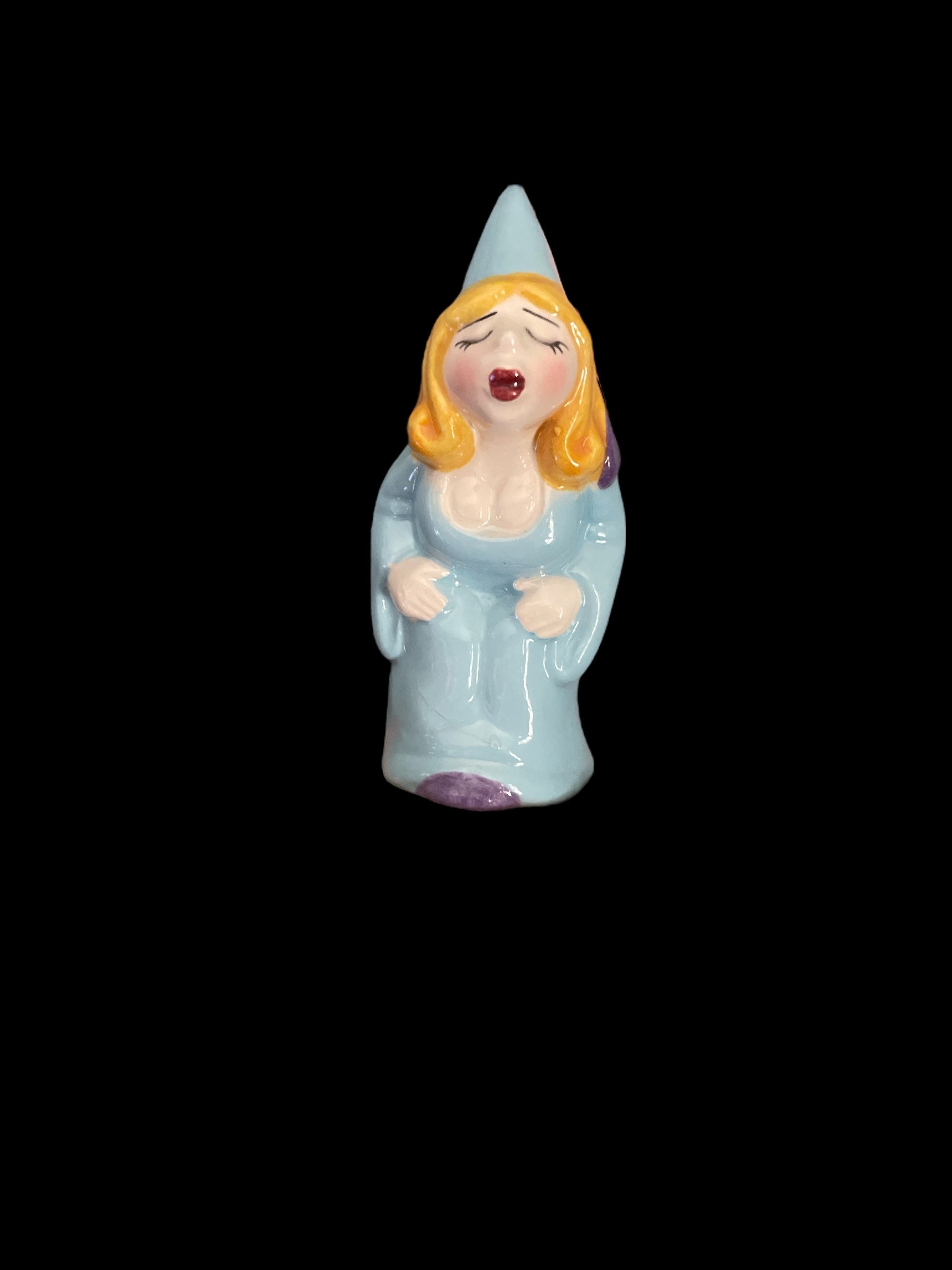 Glass salt and pepper shakers are repurposed for this fairy tale piece. As a princess, you have to kiss a lot of frogs before you find your prince. This serves as encouragement for those still out there puckering up in hopes of finding their happily ever after.