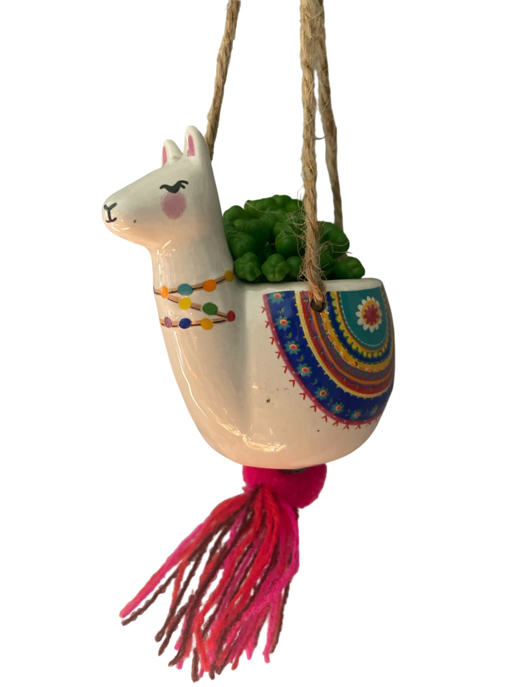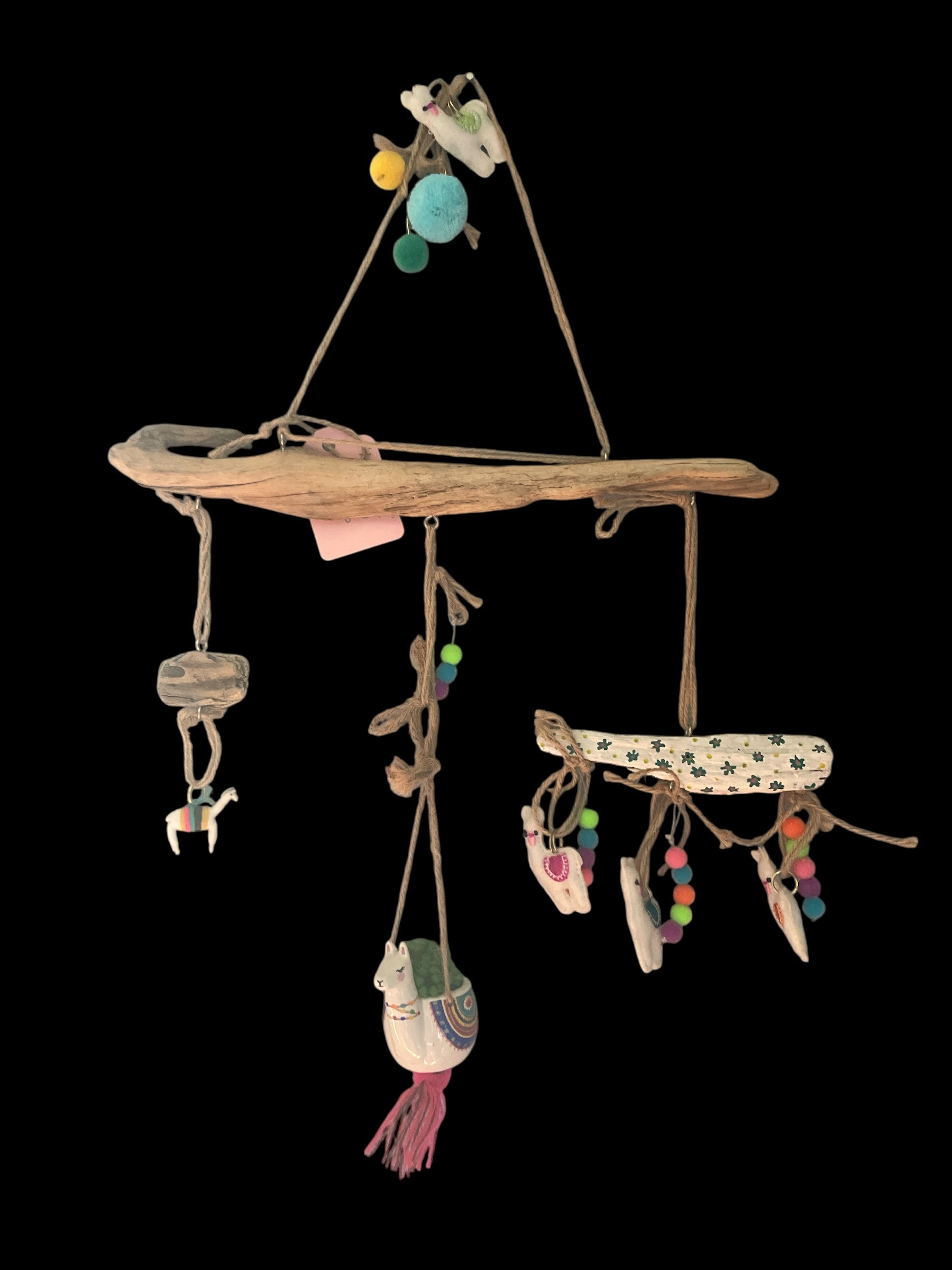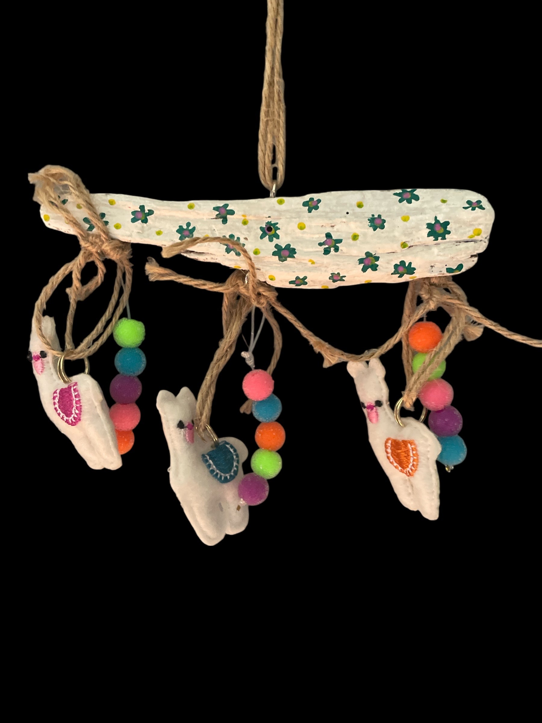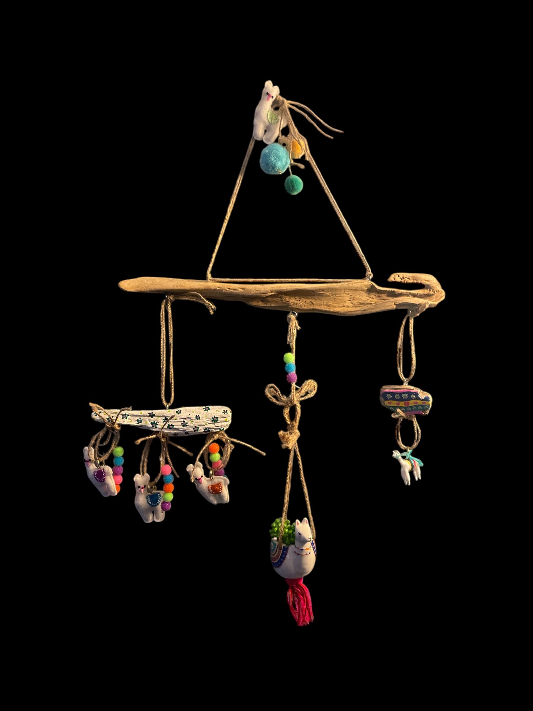 Save the drama for your llama mama! This one is seriously so much fun! Several pieces of Lake Erie drift-wood, two of which are hand-painted to match the patterns on the llama faux succulent pot. Baby llamas, pom-poms, candied colored beading- all of these things come together for a ridiculously joyful amount of whimsy and all things llamazing!